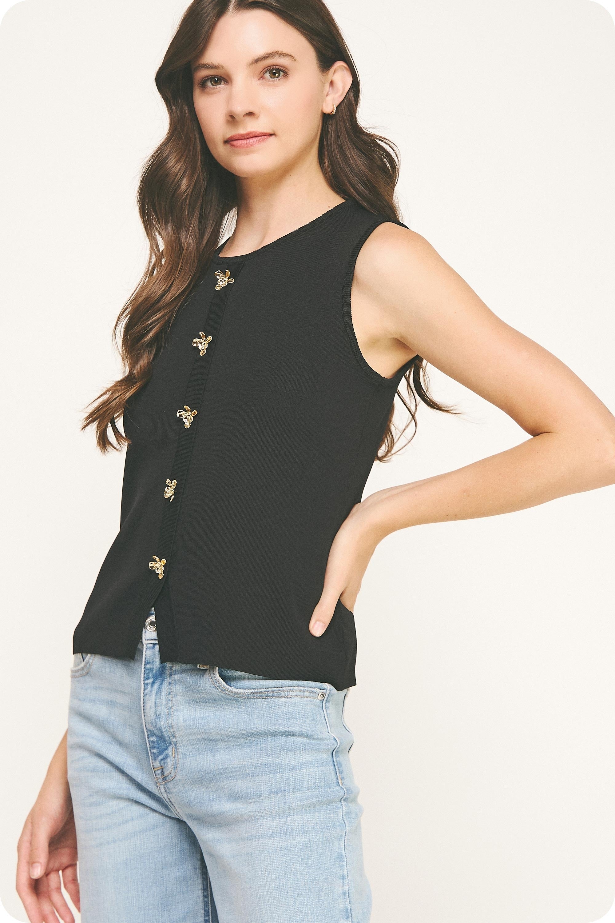 Elexis Flower Button Vest