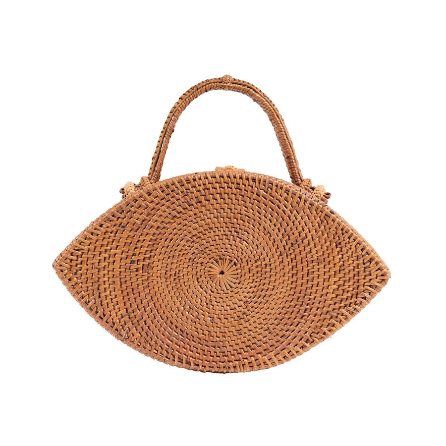 Elevate your accessory collection with the Iris Handmade Rattan Purse, a stunning blend of artisanal craftsmanship and meaningful design. Handcrafted in Bali, this purse is designed in the shape of an evil eye, a symbol renowned for its protective and positive energy.
