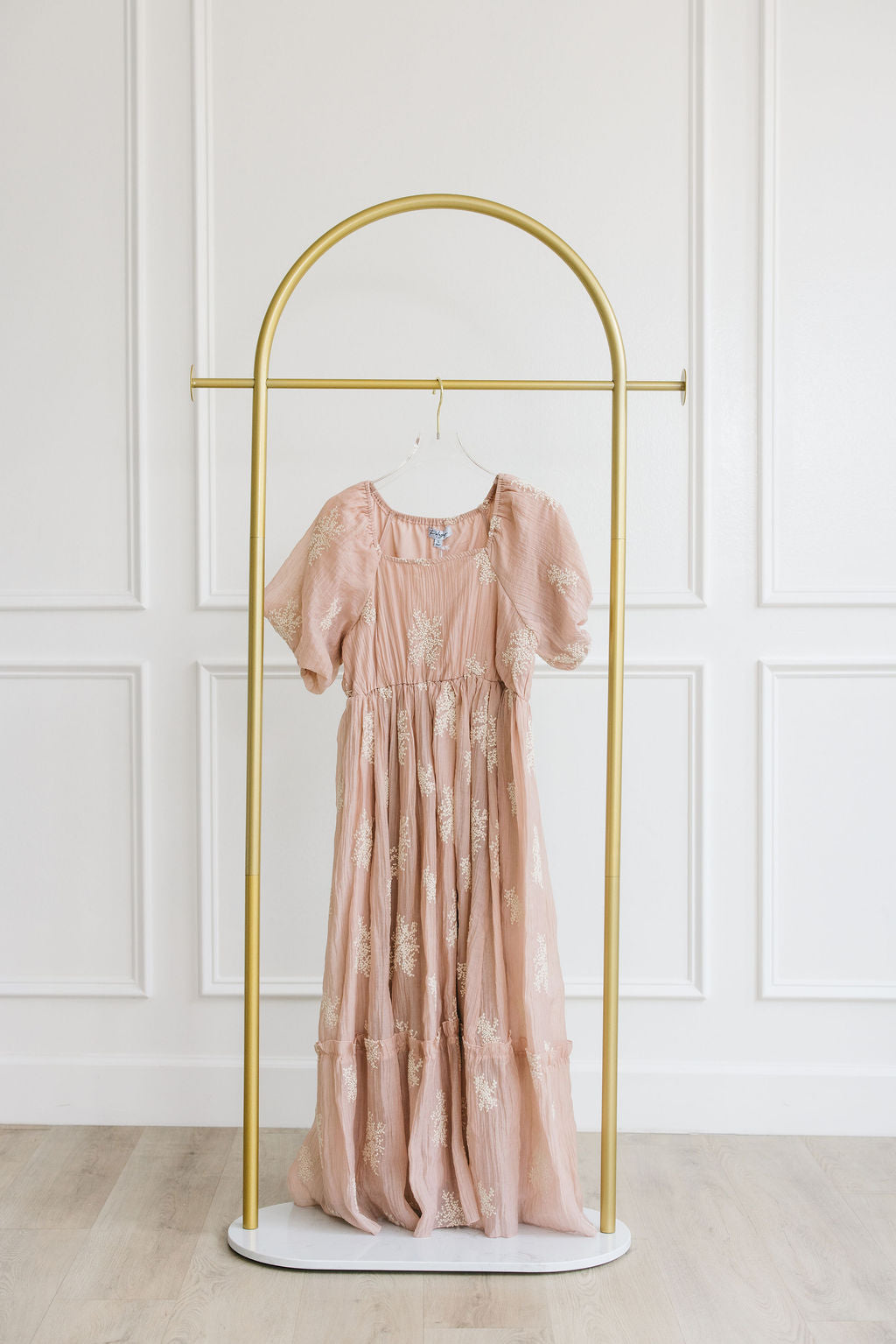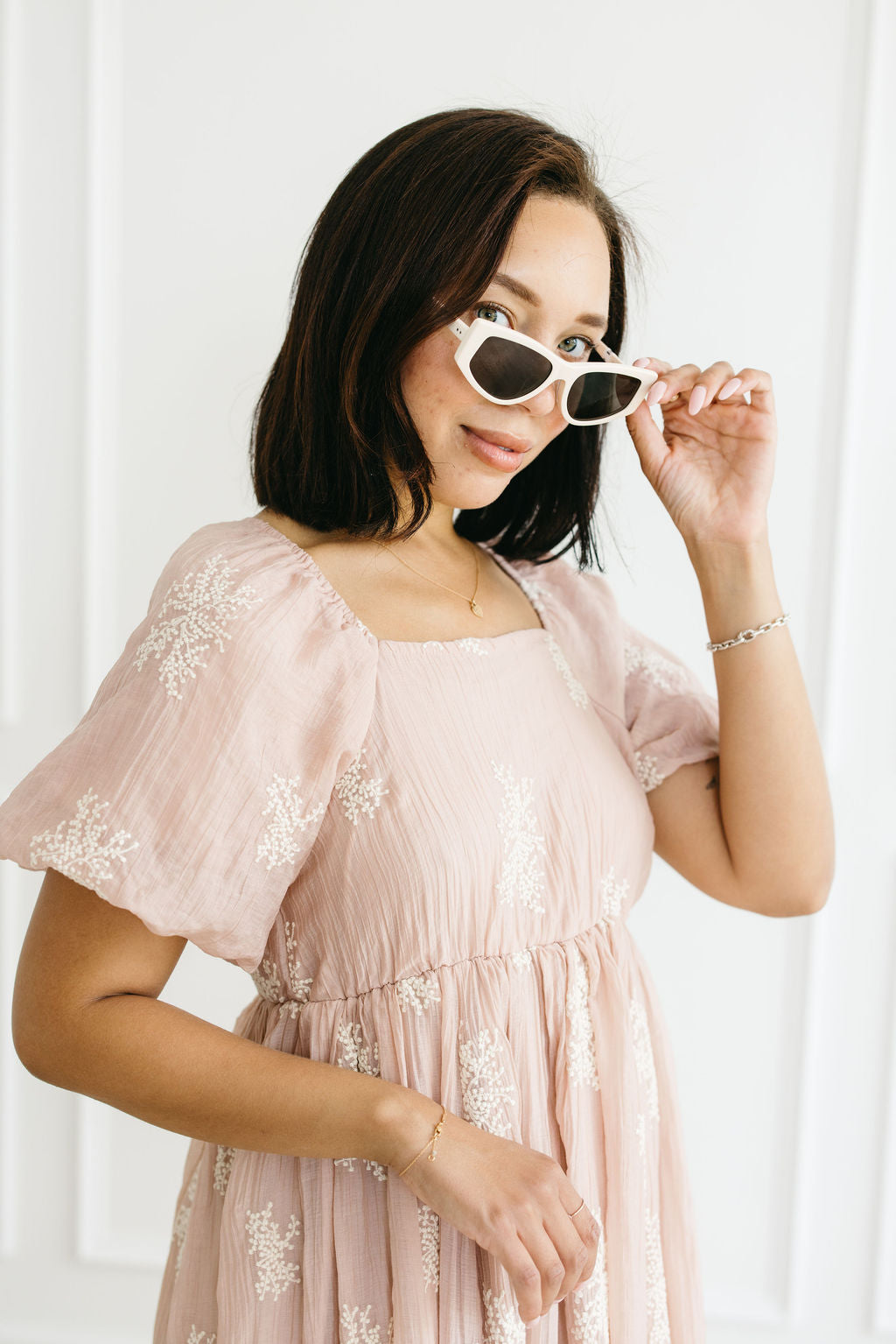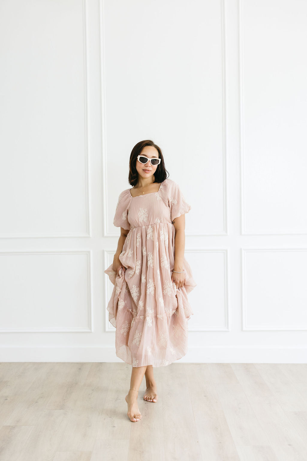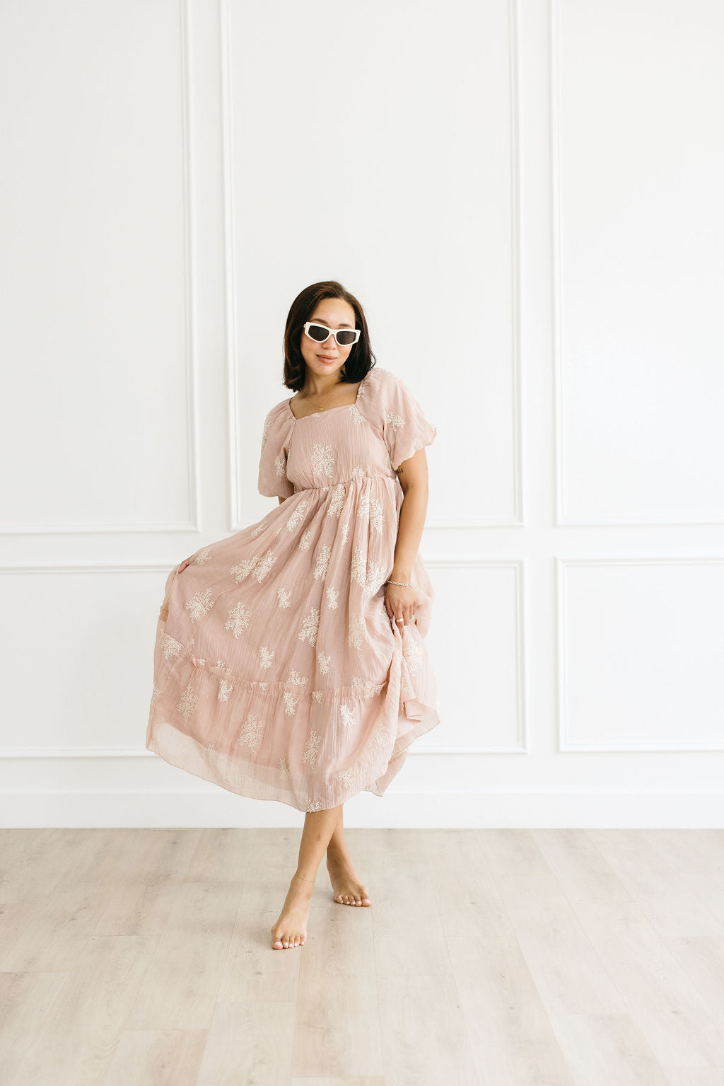 - Blush With White Baby Breath Floral Embroidery Fabric