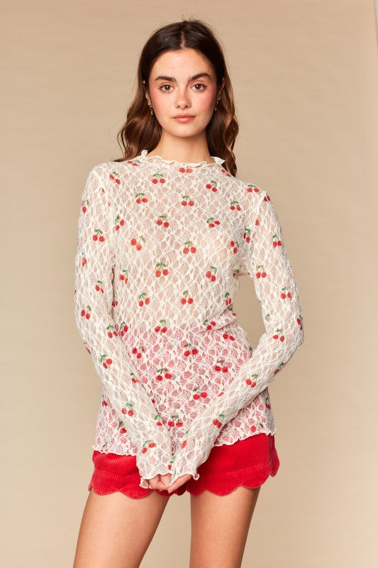 A sweet, feminine look with romantic details like scalloped edging. Lightweight, soft breathable feel with subtle transparency. Fitted silhouette designed to layer easily under jackets, cardigans, or dresses. Long sleeves with lace detailing add elegance and versatility for year-round styling. Perfect for pairing with denim, skirts, or tailored bottoms for both casual and dressed-up looks
